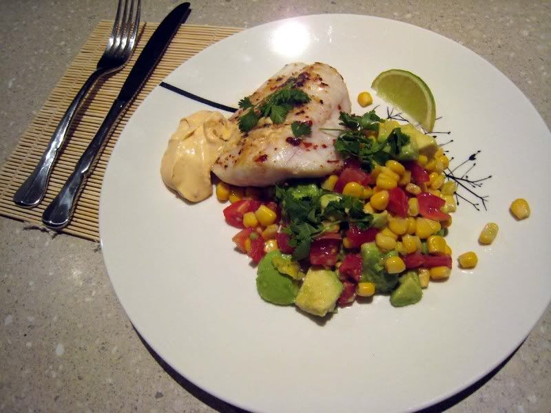 this is the fish with corn salsa, i think i used snapper that night & seasoned it with chili flakes also.