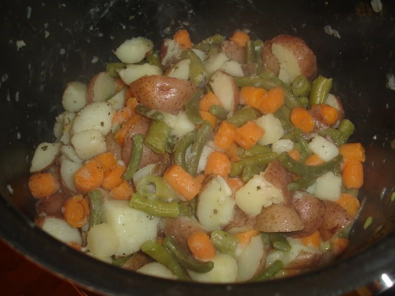 Also, I don't like cooked carrots very well, so I cooked them with the potatoes (still a little crunchy), if you want them more done, then you would want to boil the carrots for awhile before adding the other veggies.
